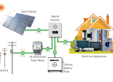 Our on-grid system generates electricity directly from sunlight and connects seamlessly with your local power grid. During the day, it supplies energy to your home, and any excess power is automatically sent back to the grid through a bi-directional meter. With net metering benefits, you earn credits for the extra electricity you produce — making solar energy both efficient and rewarding.